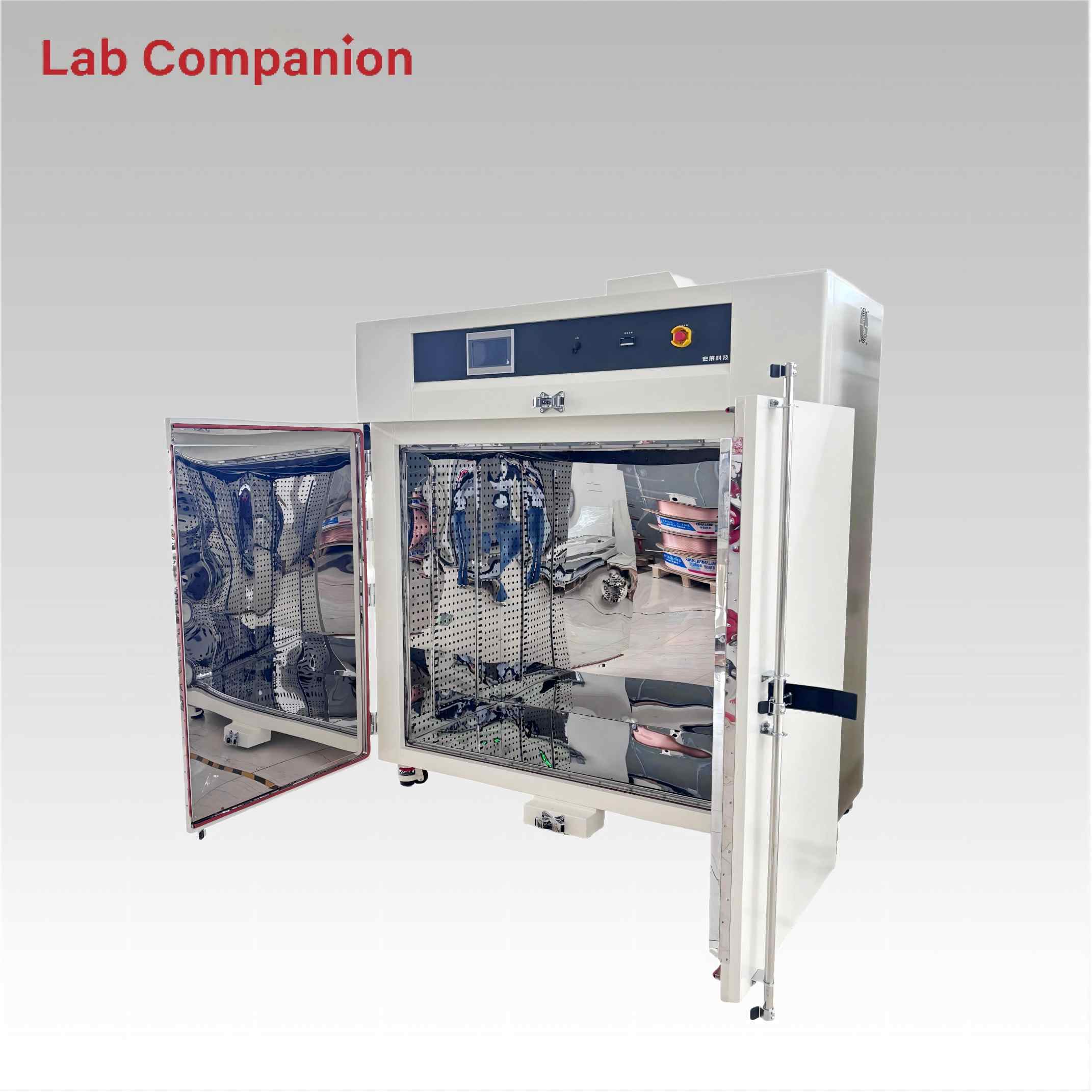 This 157L industrial precision oven is designed for aging, drying, baking, curing, bonding and defoaming. It offers a temperature range of RT to +200℃ with a heating-up time of 25 minutes, an integrated programmable controller, and 0.01℃ temperature control precision. Horizontal air convection ensures uniform heat distribution for reliable product testing
